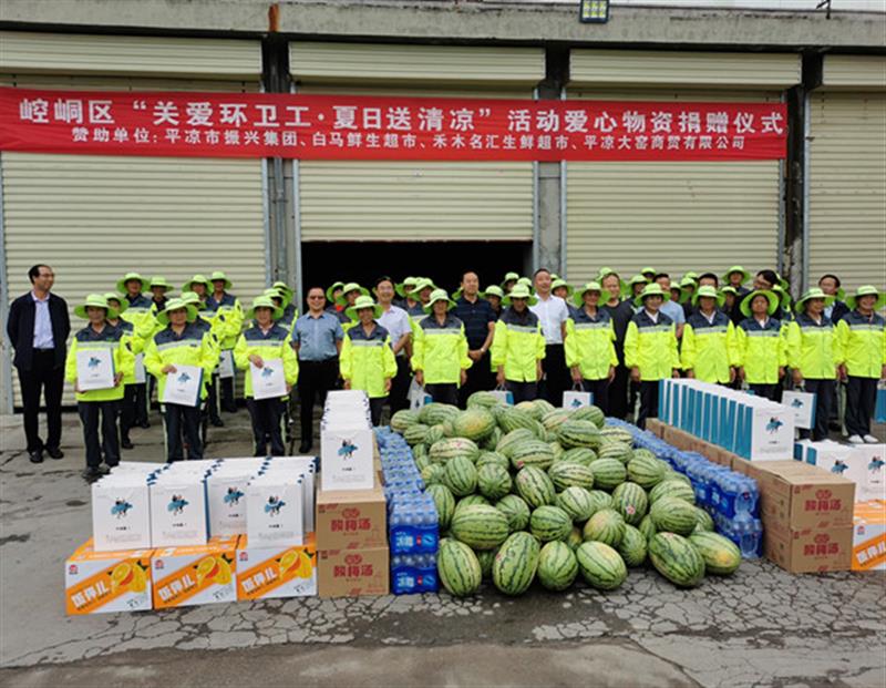 為了積極響應(yīng)區(qū)委、區(qū)政府發(fā)出的以“清涼度盛夏,安康伴我行”為主題的“夏日送清涼·真情暖人心”活動(dòng)的號(hào)召,在區(qū)工商聯(lián)的組織下,平?jīng)鍪姓衽d集團(tuán)于2020年7月18日下午,參加了在崆峒區(qū)環(huán)衛(wèi)處院內(nèi)舉行的“夏日送清涼·真情暖人心”活動(dòng)物資捐贈(zèng)儀式,集團(tuán)副董事長鄭龍參加了本次活動(dòng),并在活動(dòng)儀式上代表捐贈(zèng)企業(yè)的所有同仁發(fā)表了講話。